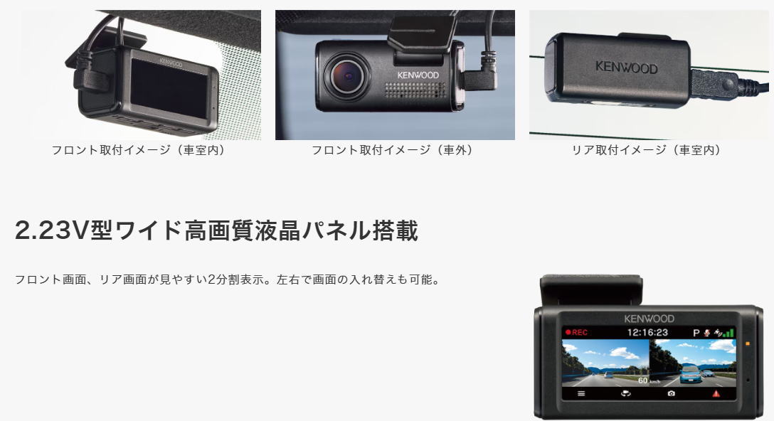 ◎ケンウッド(KENWOOD)前後2カメラドライブレコーダー